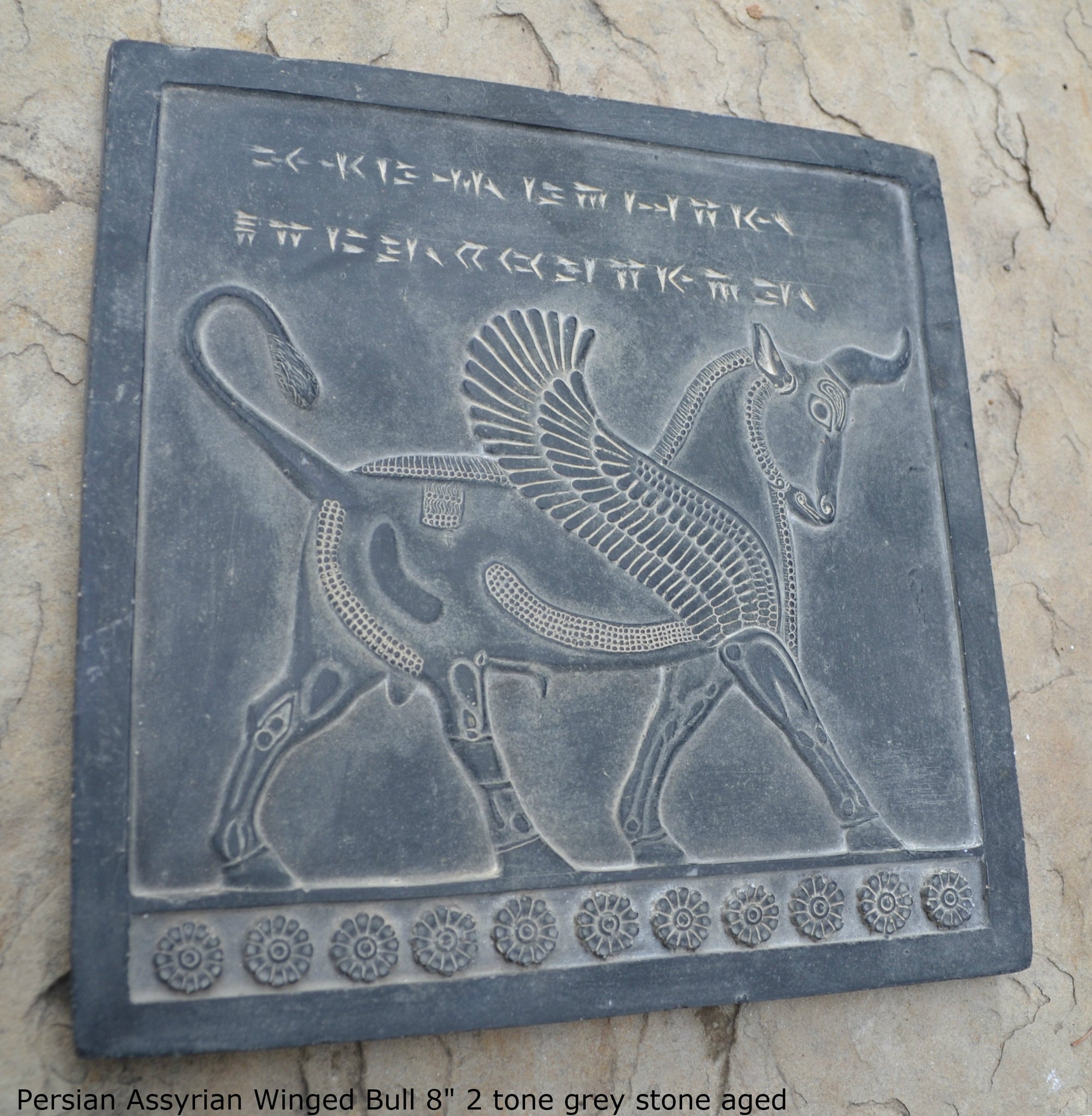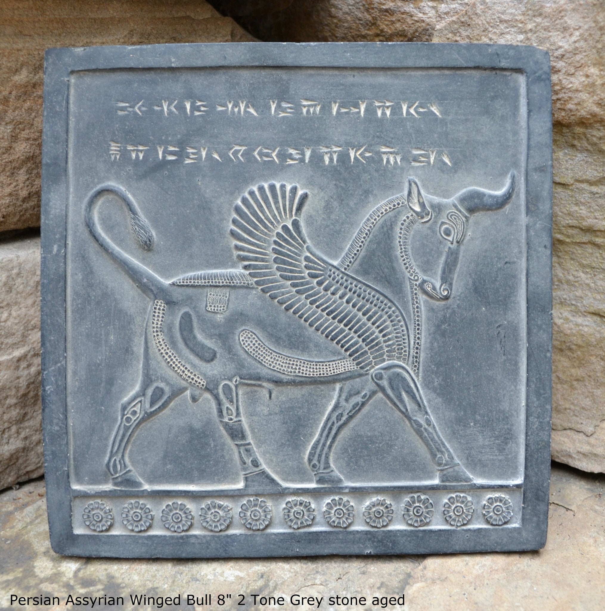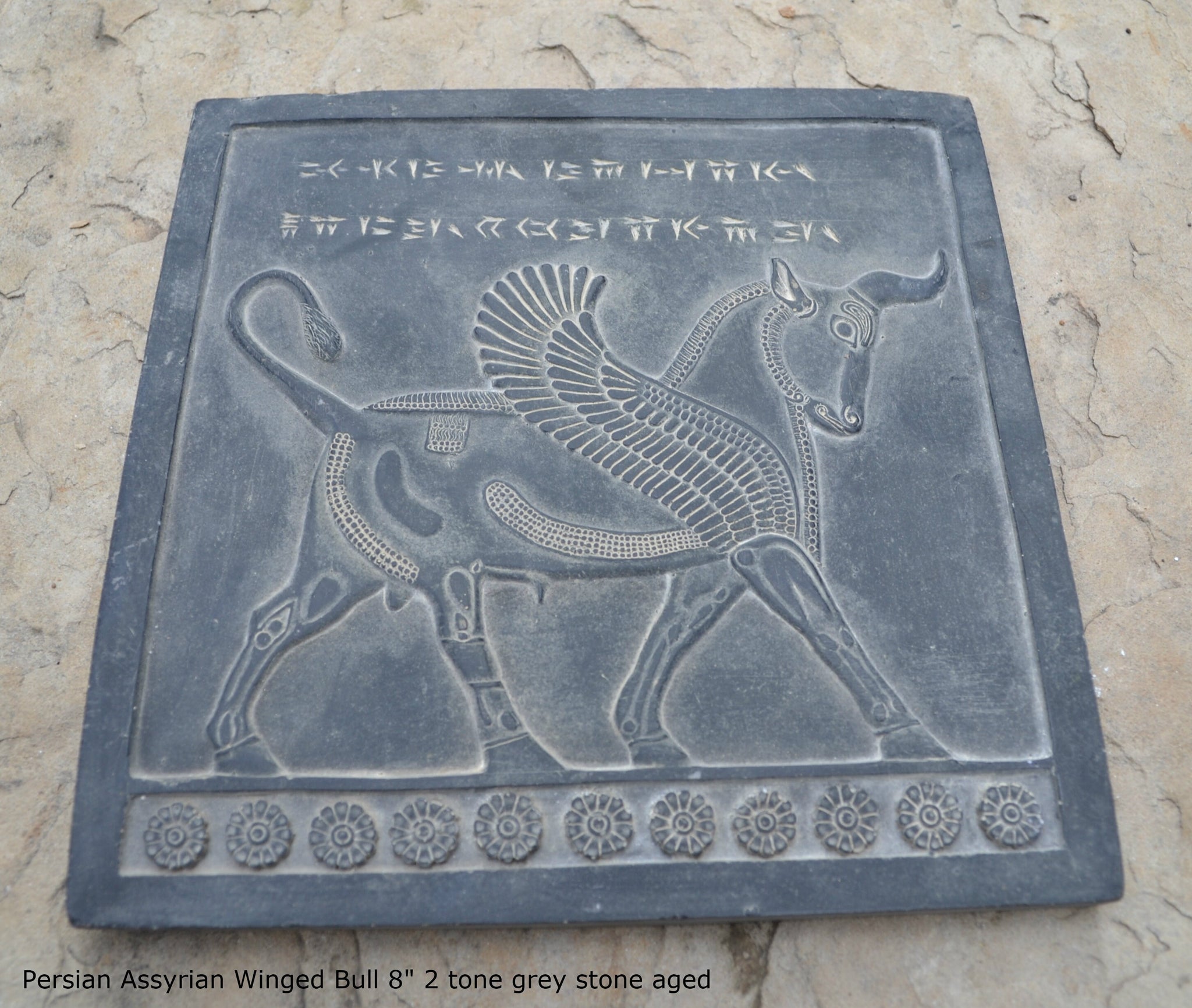 Assyrian Persian Winged Bull Sculpture reproduction art 8" www.Neo-Mfg.com Museum Reproduction