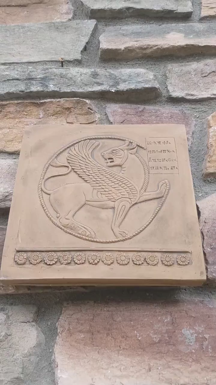 Assyrian Persian Winged lion Griffin Achaemenid Persepolis carvings Sculpture reproduction art 8" www.Neo-Mfg.com Museum Reproduction