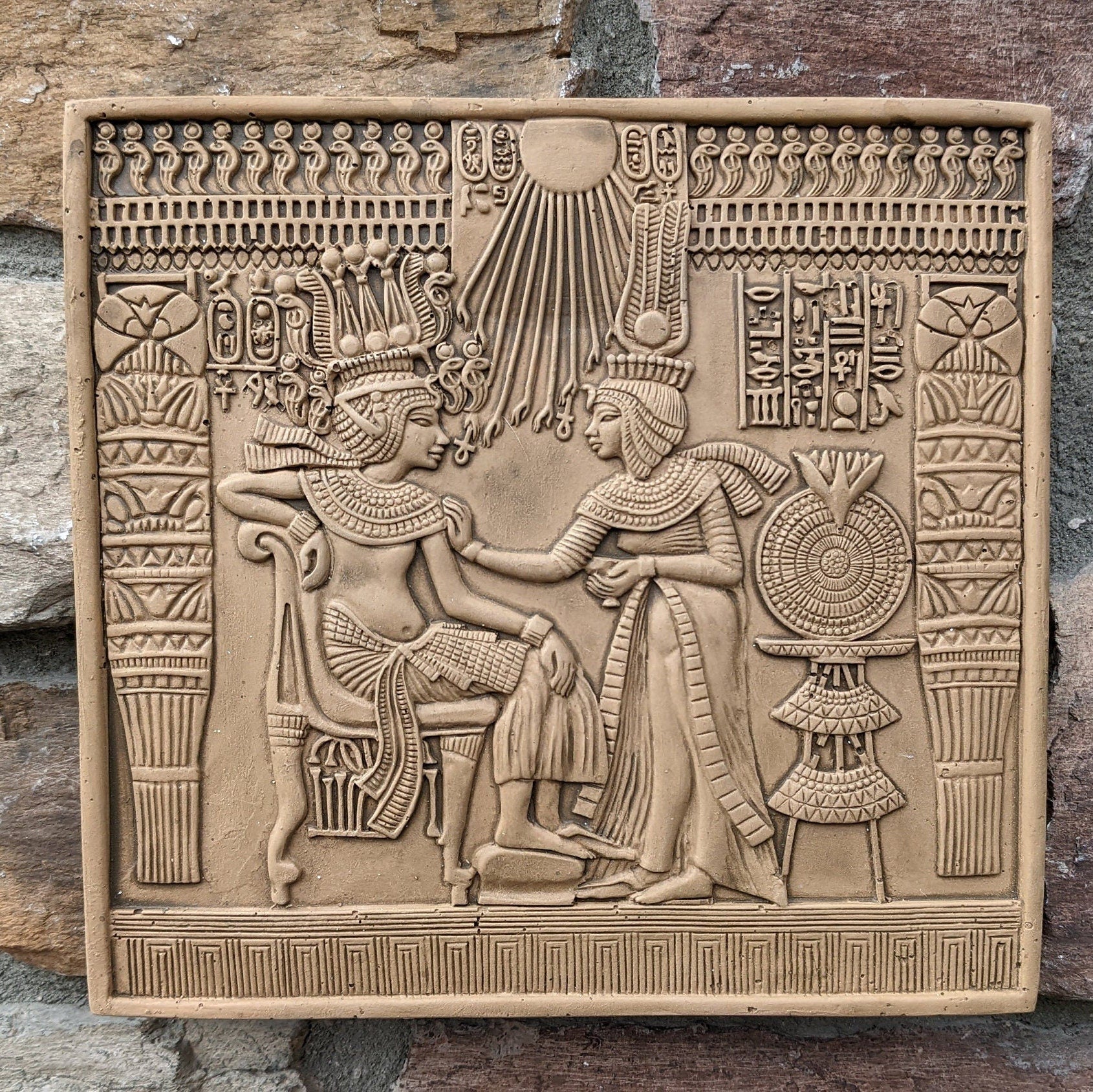 Egyptian King Tut Tutankhamen Throne chair front Sculptural wall relief plaque www.Neo-Mfg.com