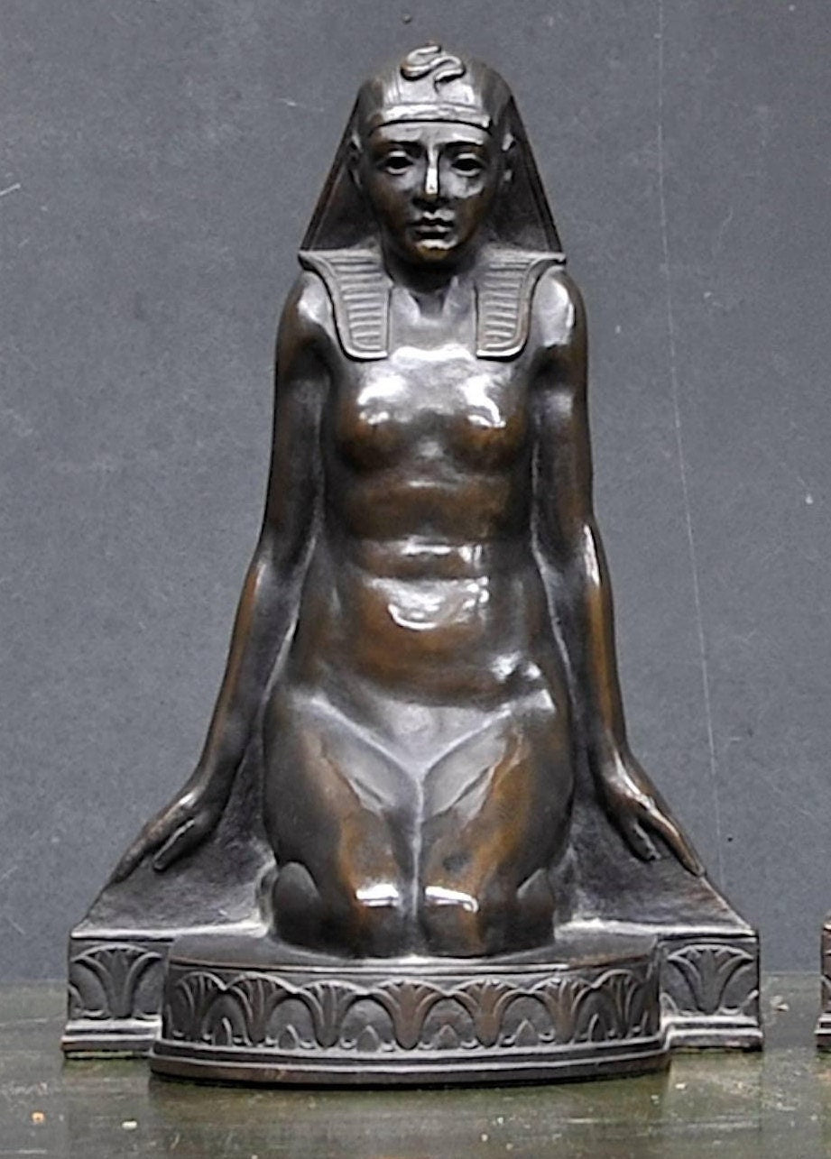 Egyptian Hand Maidens Bookends created during the Egyptian Revival Movement in style of Peinlich.