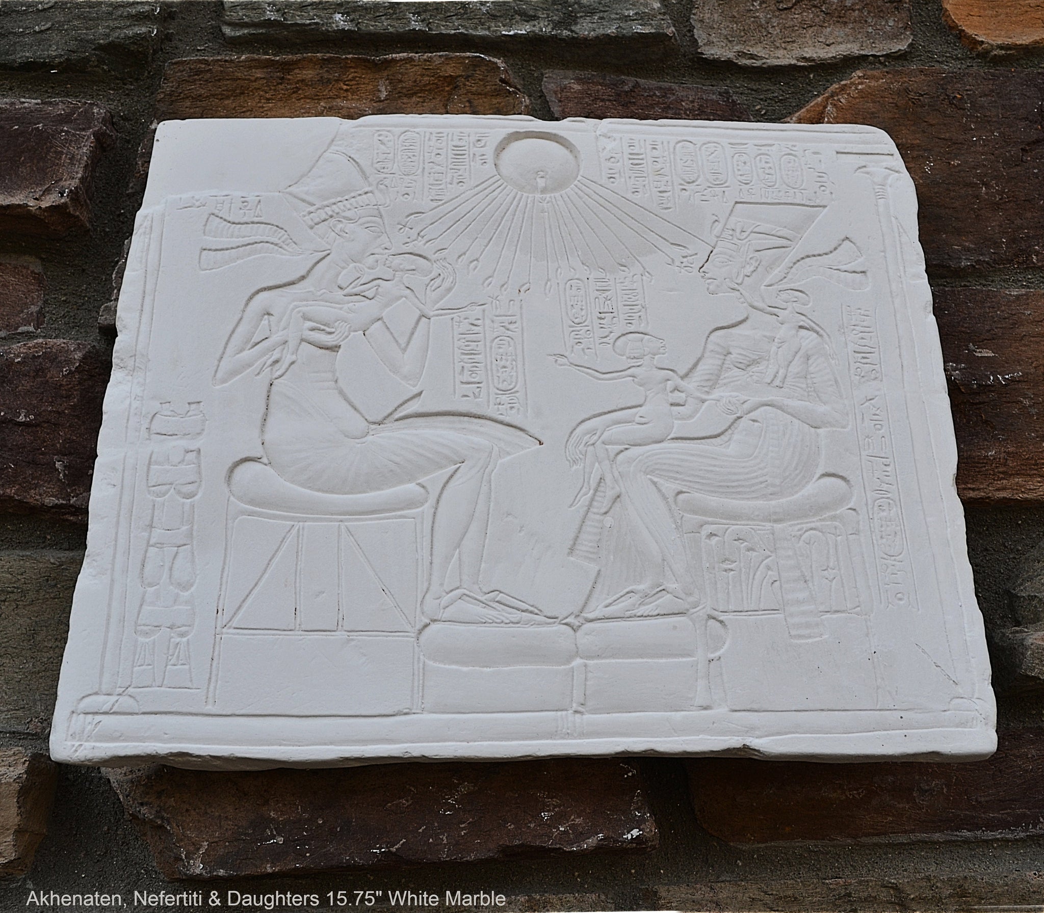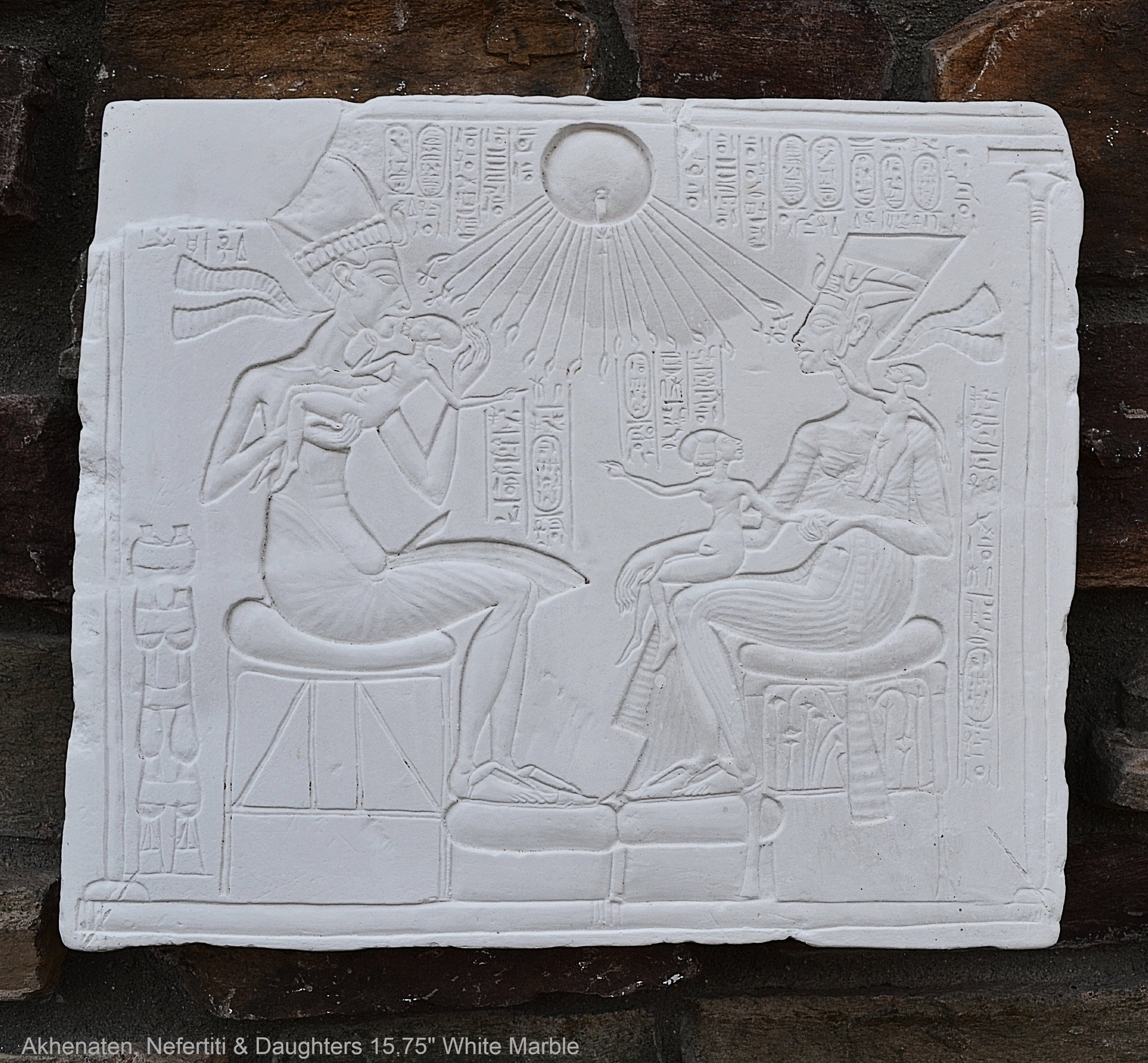History Egyptian Akhenaten, Nefertiti & Daughters Plaque Artifact Sculpture 15.75" www.Neo-Mfg.com Museum Reproduction