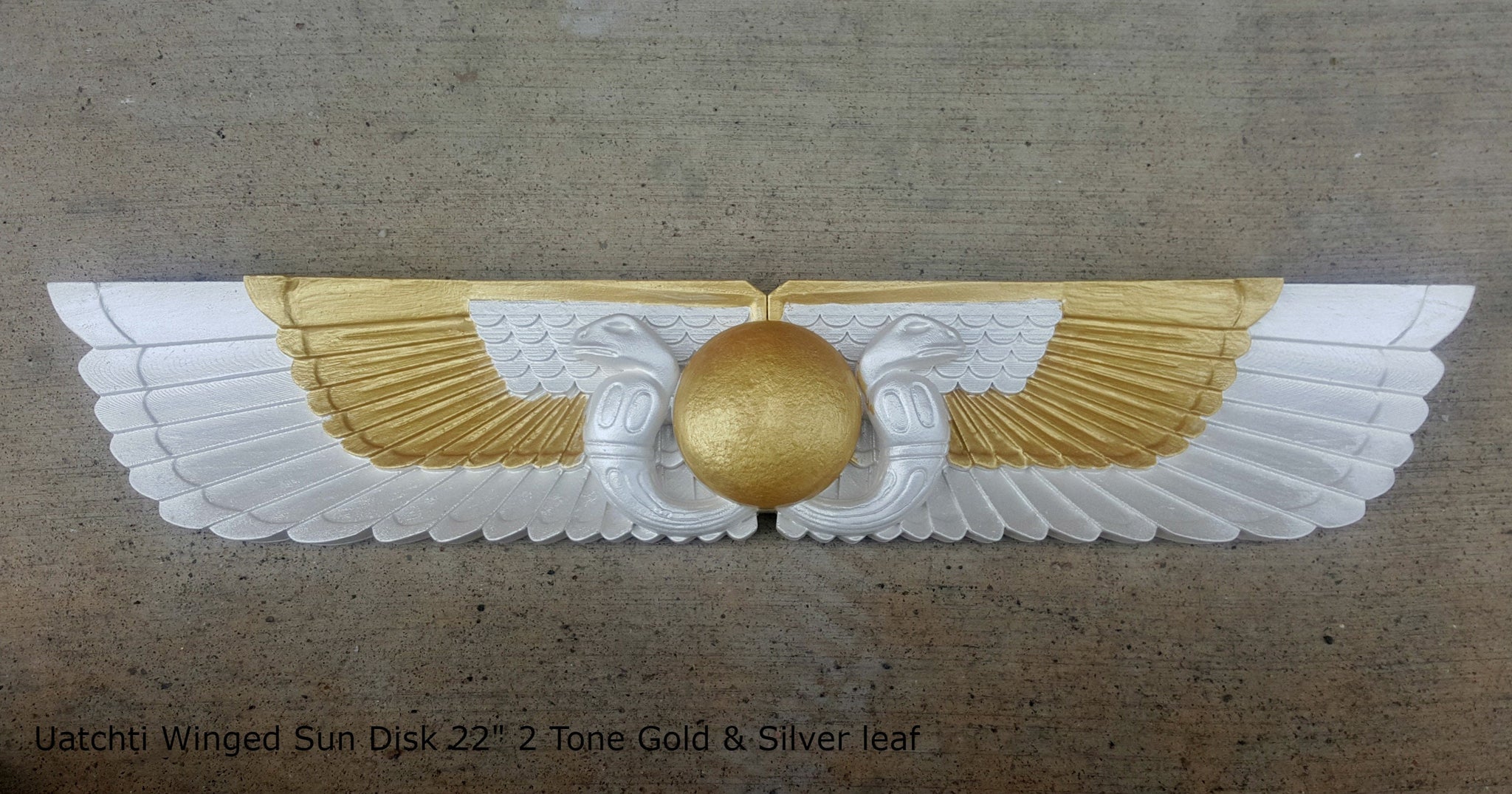 History Egyptian Ur Uatchti Winged Sun Disk Pediment hieroglyph Sculptural wall relief www.Neo-Mfg.com 20"