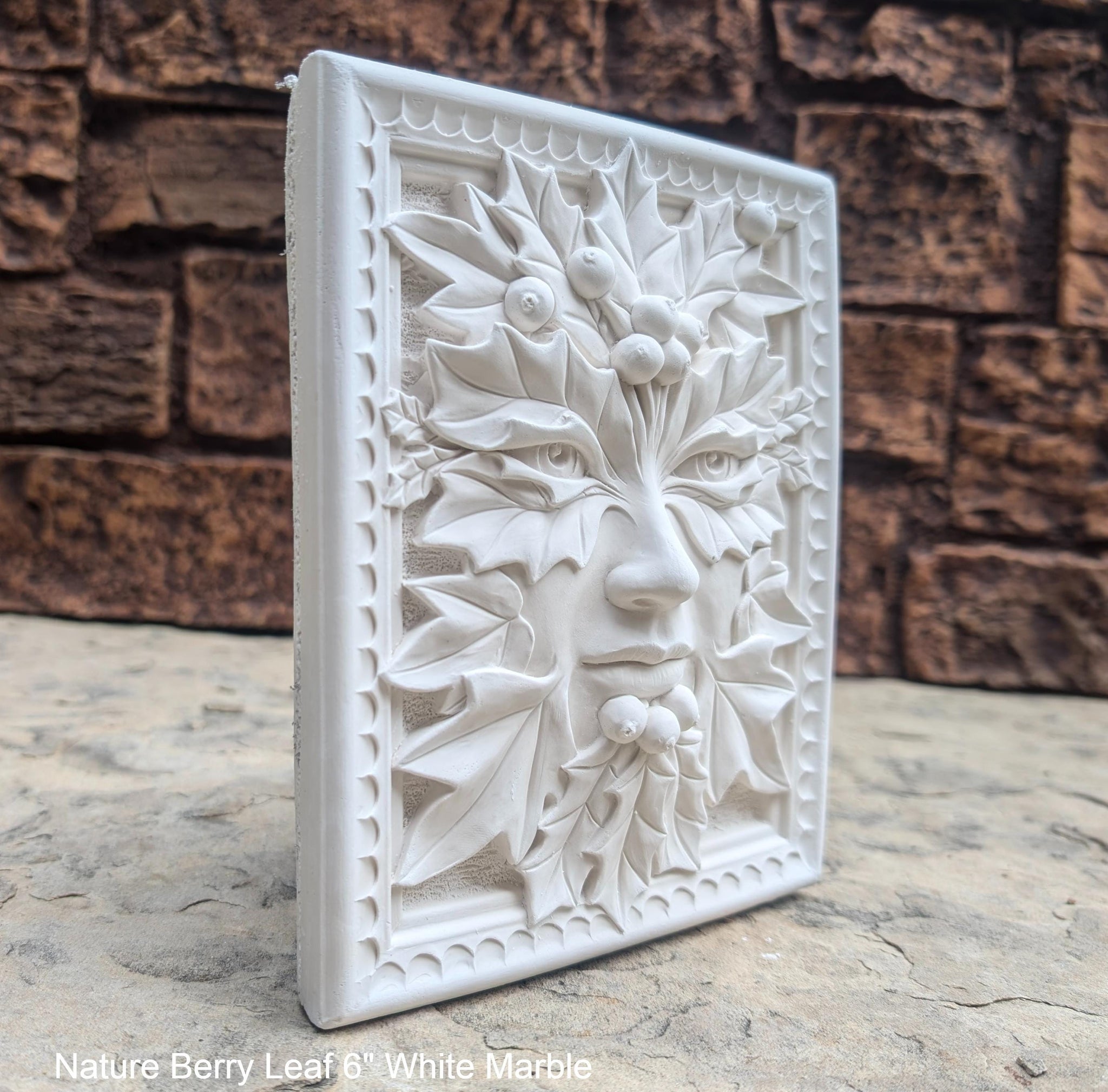 Nature Berry Leaf Mythical Man Mask greenman greenwoman Wall Plaque Vintage sculpture 6" www.Neo-Mfg.com green man woman