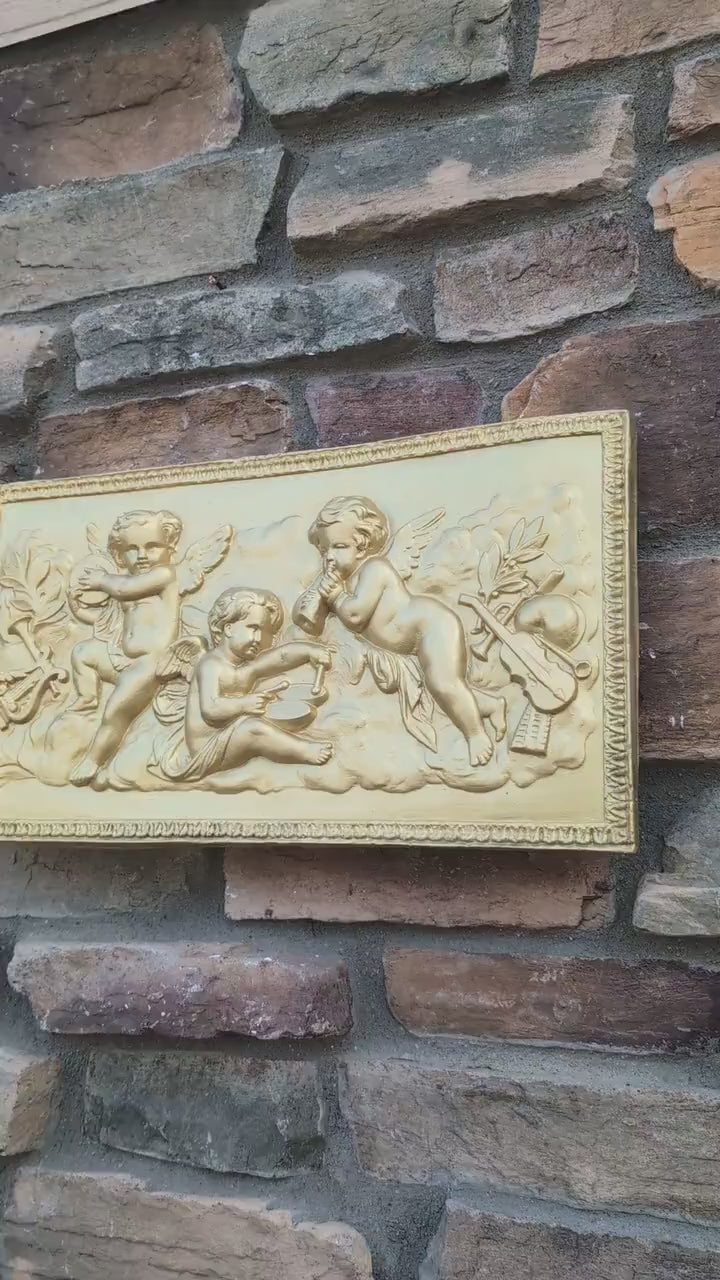 Eros Musical Cherub Cupid Greek Wall Sculpture Plaque Angels 17" www.NEO-MFG.com