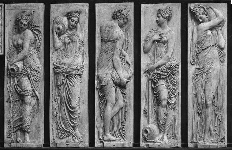 Roman Greek Carved nymph Fountain of Innocents Danaides of Argos Dress Figure Sculptural Wall frieze plaque relief www.Neo-Mfg.com 22"