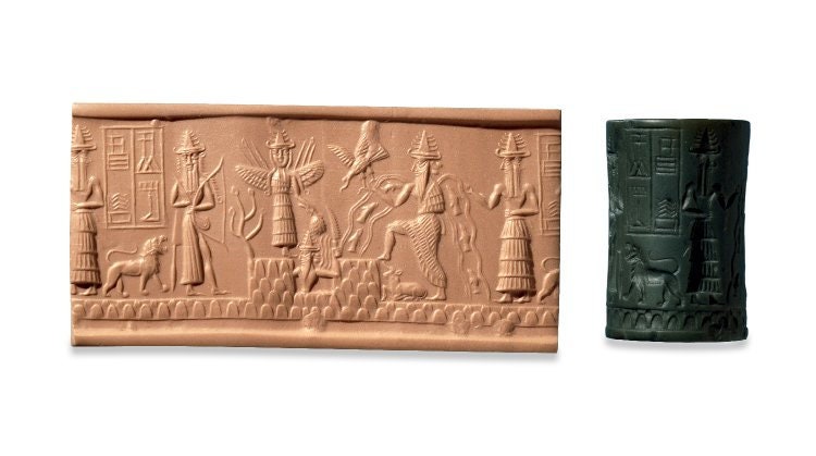 Historical Assyrian Akkadian Adda Cylinder Seal wall Sculpture www.Neo-Mfg.com Mesopotamia Museum Reproduction