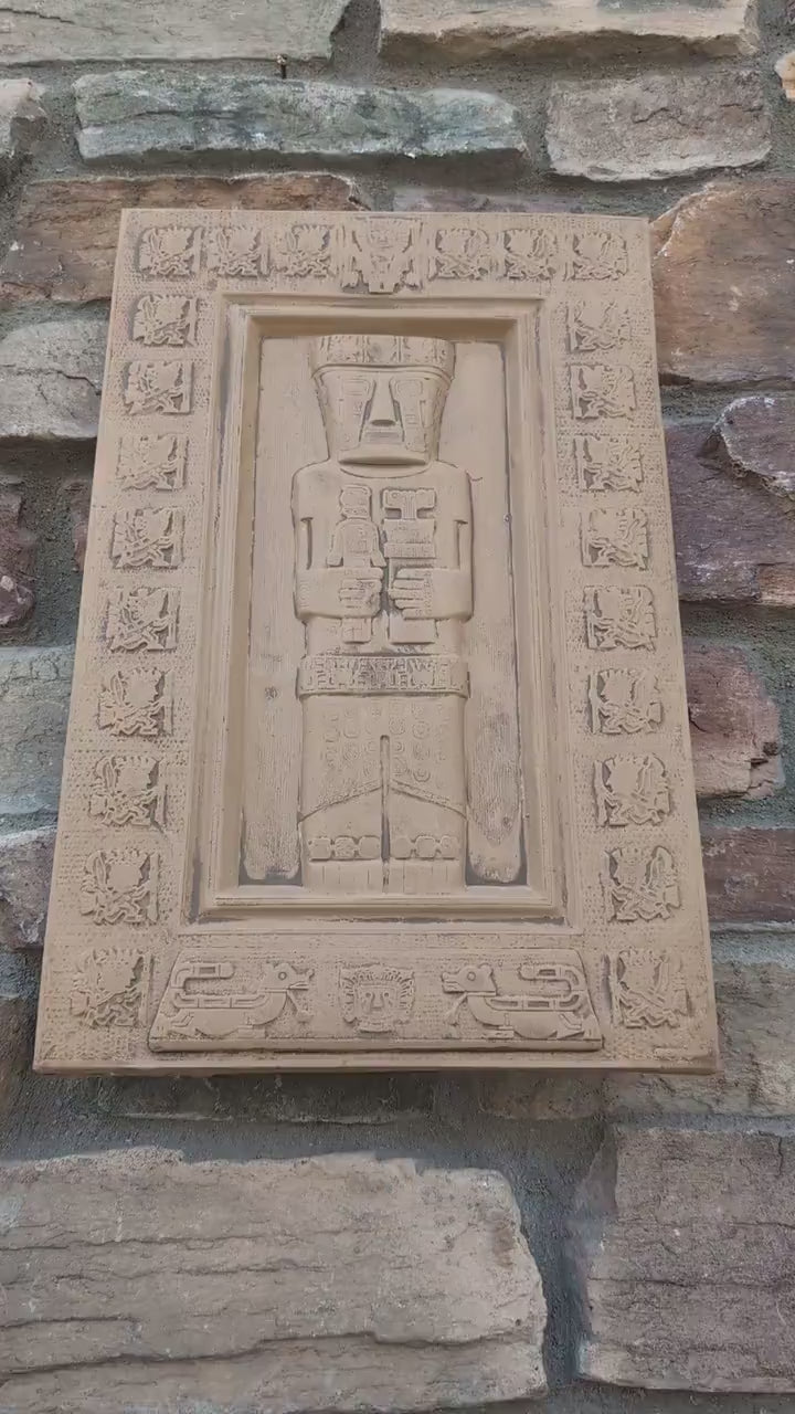 Inca Viracocha Tiwanaku monolithic Sculptural wall relief plaque 17" www.Neo-Mfg.com