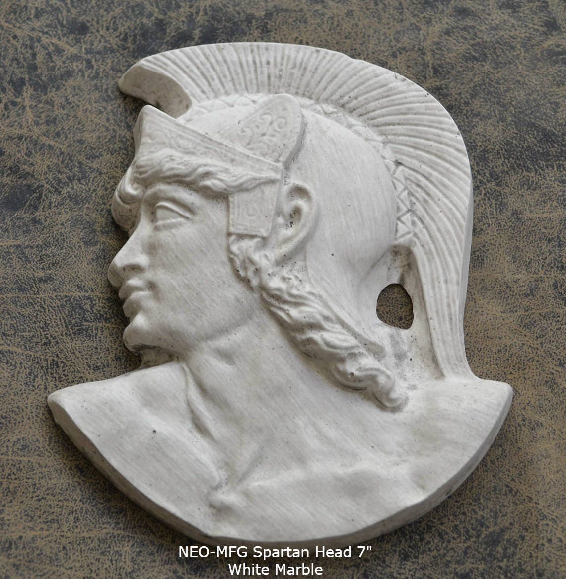 Roman Greek Spartan Bust Sculptural wall relief plaque home decor 7" www.Neo-Mfg.com